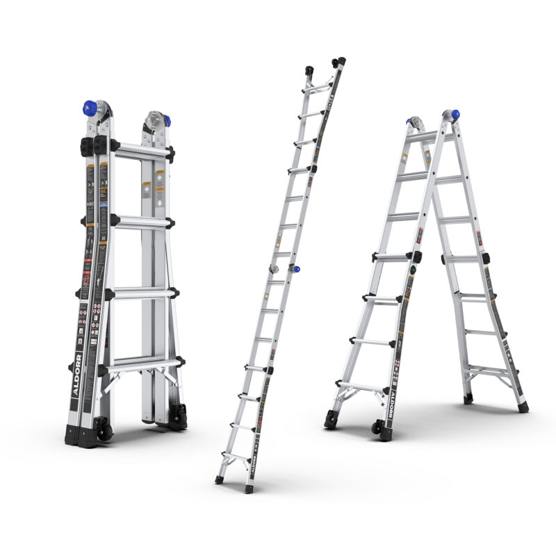 Entdecken Sie das Kraftpaket unseres Sortiments: die ALDORR Multiladder Max. Speziell für anspruchsvolle Arbeiten entwickelt, bietet diese Leiter maximale Leistung und Flexibilität. Sie besteht aus einem robusten Aluminiumrahmen mit cleveren Höheneinstellungen und Transportrollen.