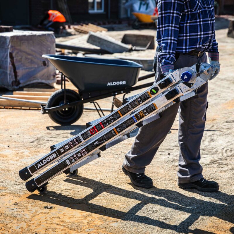 Entdecken Sie das Kraftpaket unseres Sortiments: die ALDORR Multiladder Max. Speziell für anspruchsvolle Arbeiten entwickelt, bietet diese Leiter maximale Leistung und Flexibilität. Sie besteht aus einem robusten Aluminiumrahmen mit cleveren Höheneinstellungen und Transportrollen.